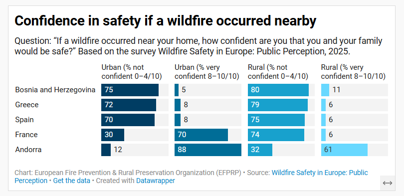 Across all countries, over 80% of urban and around 75% of rural residents said they are “highly concerned” about wildfire risk.